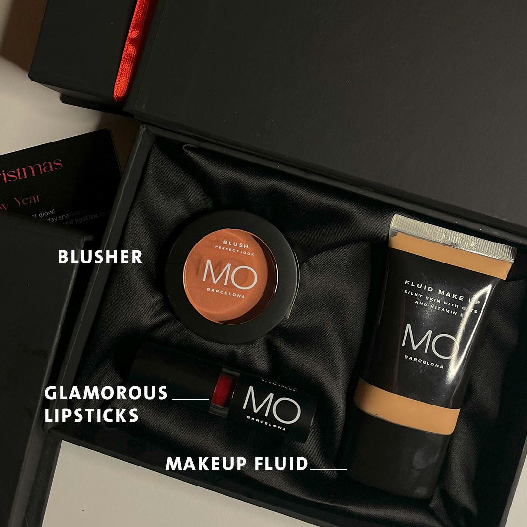 تألقي هذا الموسم الاحتفالي مع مجموعة مكياج Holiday Glow. تتضمن هذه المجموعة الثلاثية من منتجات المكياج الأساسية أحمر خدود مضيء لإضفاء لمسة من الدفء، وأحمر شفاه مرطب بلون احتفالي، وأساس خفيف الوزن للحصول على لمسة نهائية طبيعية ومشرقة.